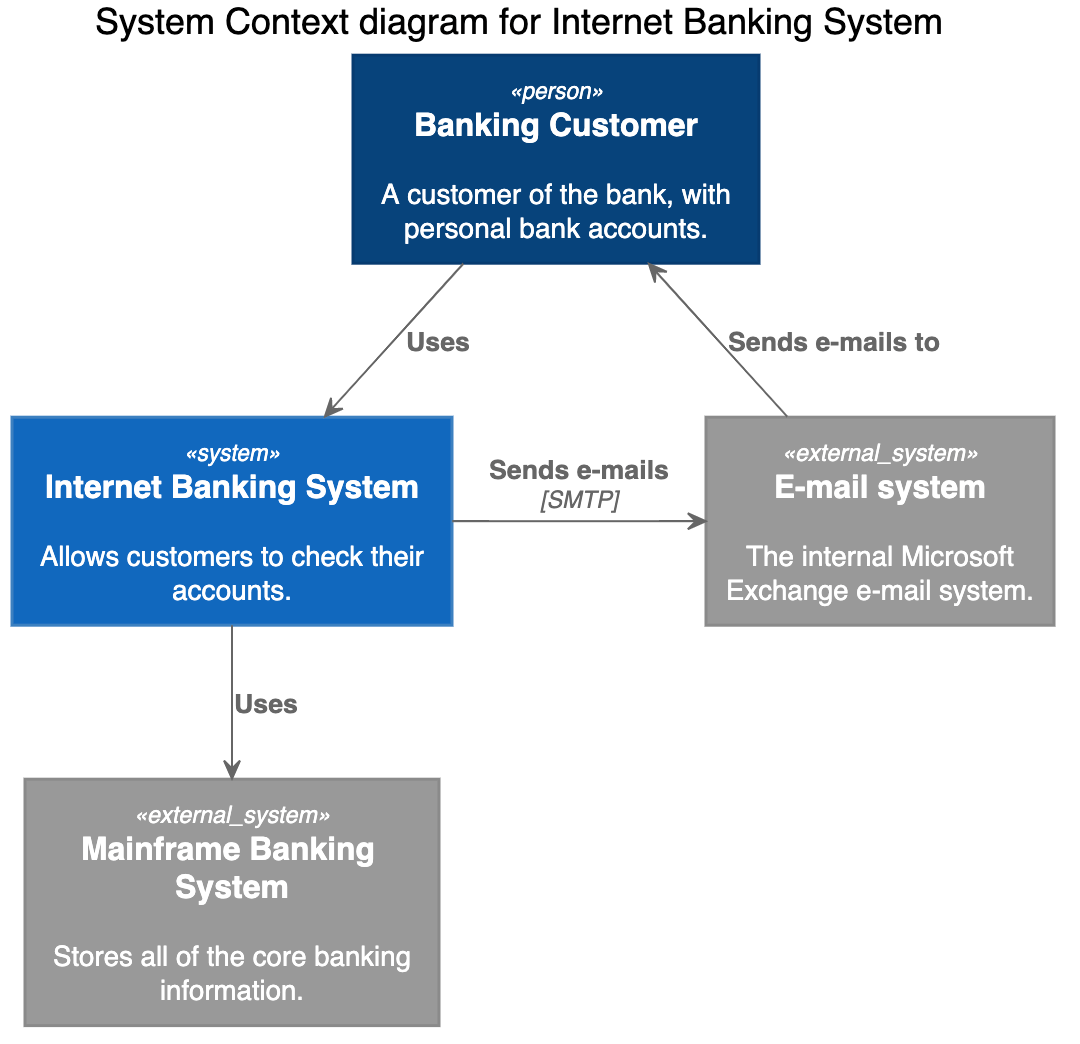 System_Ext(mainframe, "Mainframe Banking System", "Stores all of the core banking information.")
