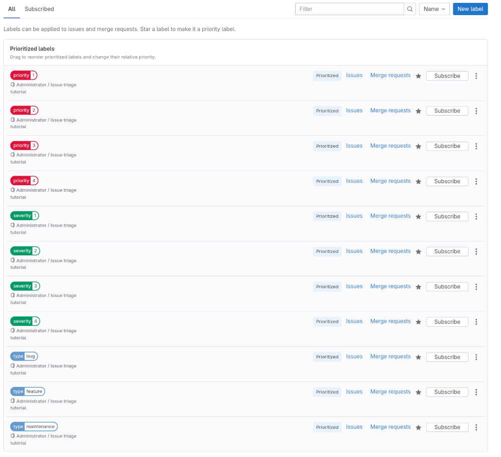 - Prioritize all the labels you previously created. Make sure that labels of higher priority and severity are higher on the list than those of lower values.