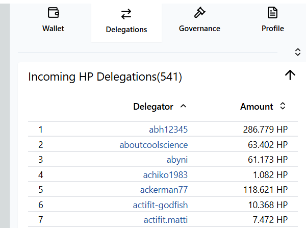 delegations (incoming/outgoing, VESTS/RCS) , witness votes, and the proxy power