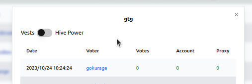 - Click on gtg list icon in "Voters" column to show modal with voters.