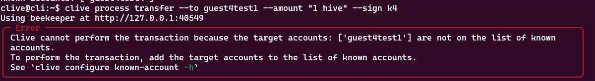 For more information about the known-account feature, see `clive configure known-account -h`.