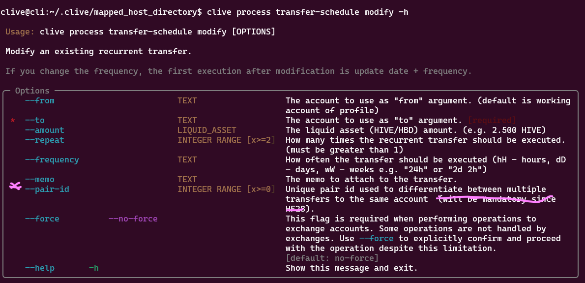 If the user doesn't specify --pair-id, Clive tries to modify the transfer with --pair-id =0 (even if there is only one transfer)