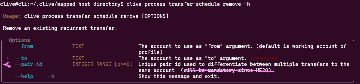 If the user doesn't specify --pair-id, Clive tries to remove the transfer with --pair-id =0 (even if there is only one transfer):