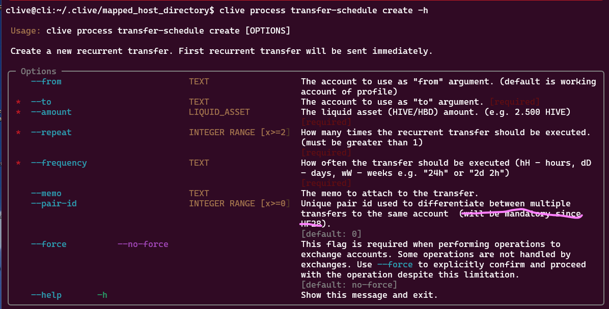 I think we don't need to change the behavior in clive process transfer-schedule create. If the user doesn't specify --pair-id, 0 is used as the default value.