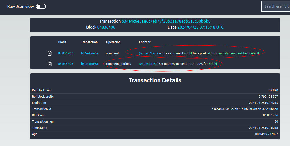Difference: With the default settings there is a difference in Denser there is not a comment options operation and HBD percent in transaction