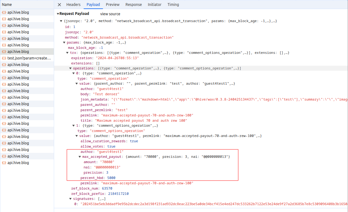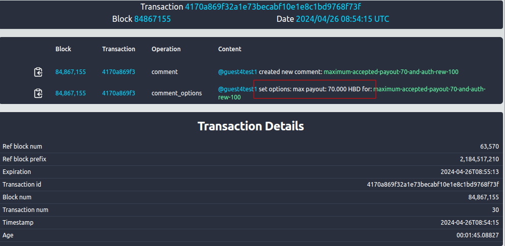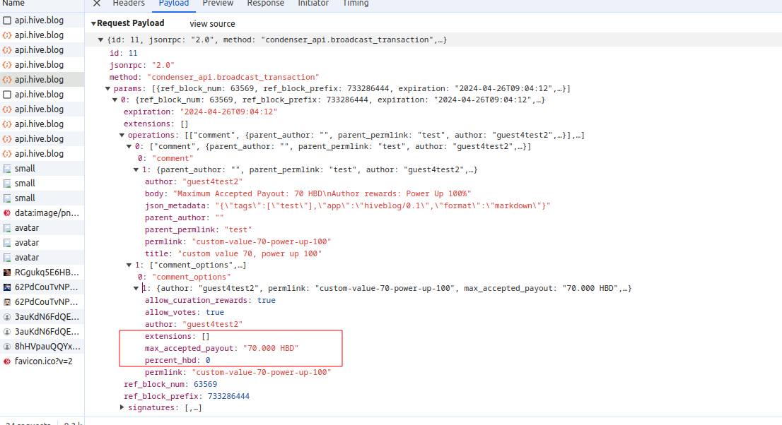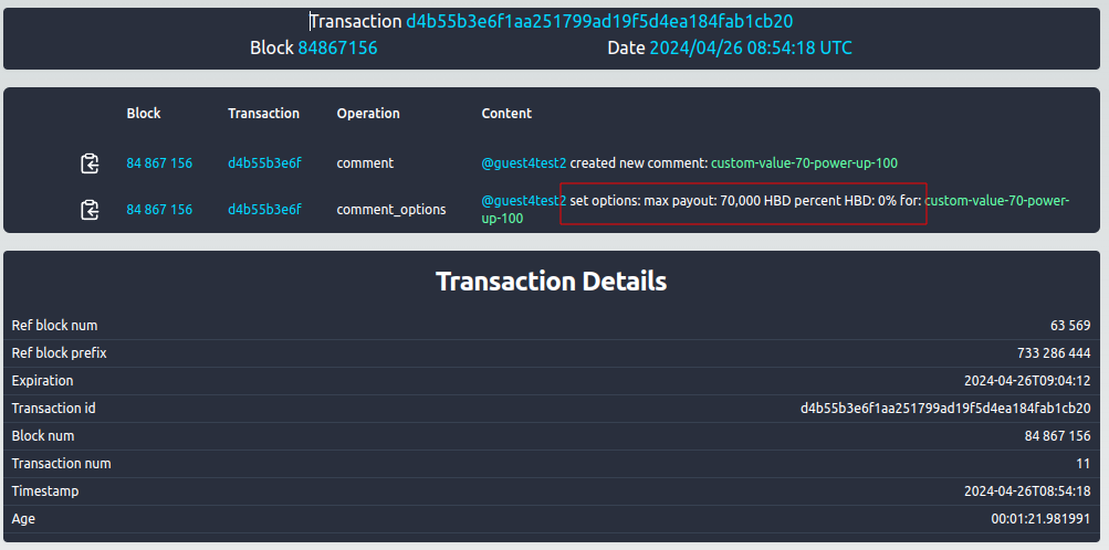 Comparision requests and transaction for creating post with author rewards 100% and custom value 70