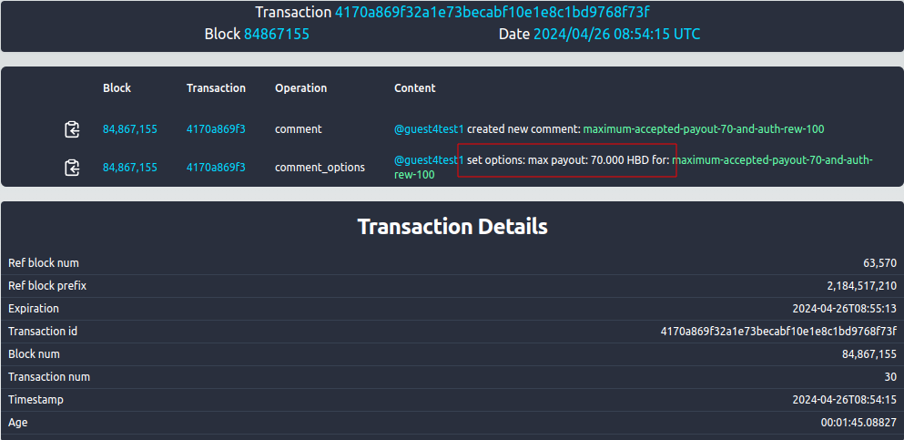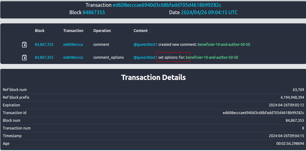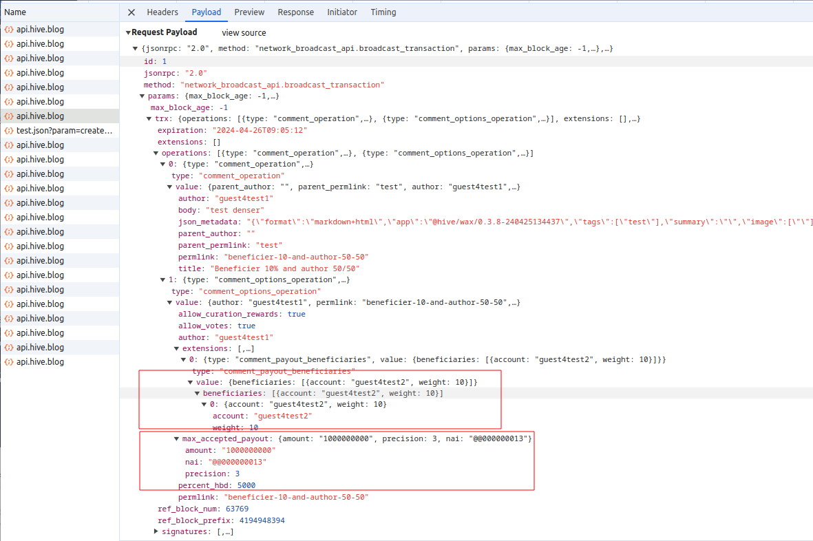 Comparision requests and transaction for creating post with author rewards 50/50 and no limit Maximum Accepted Payout and beneficiare 10%