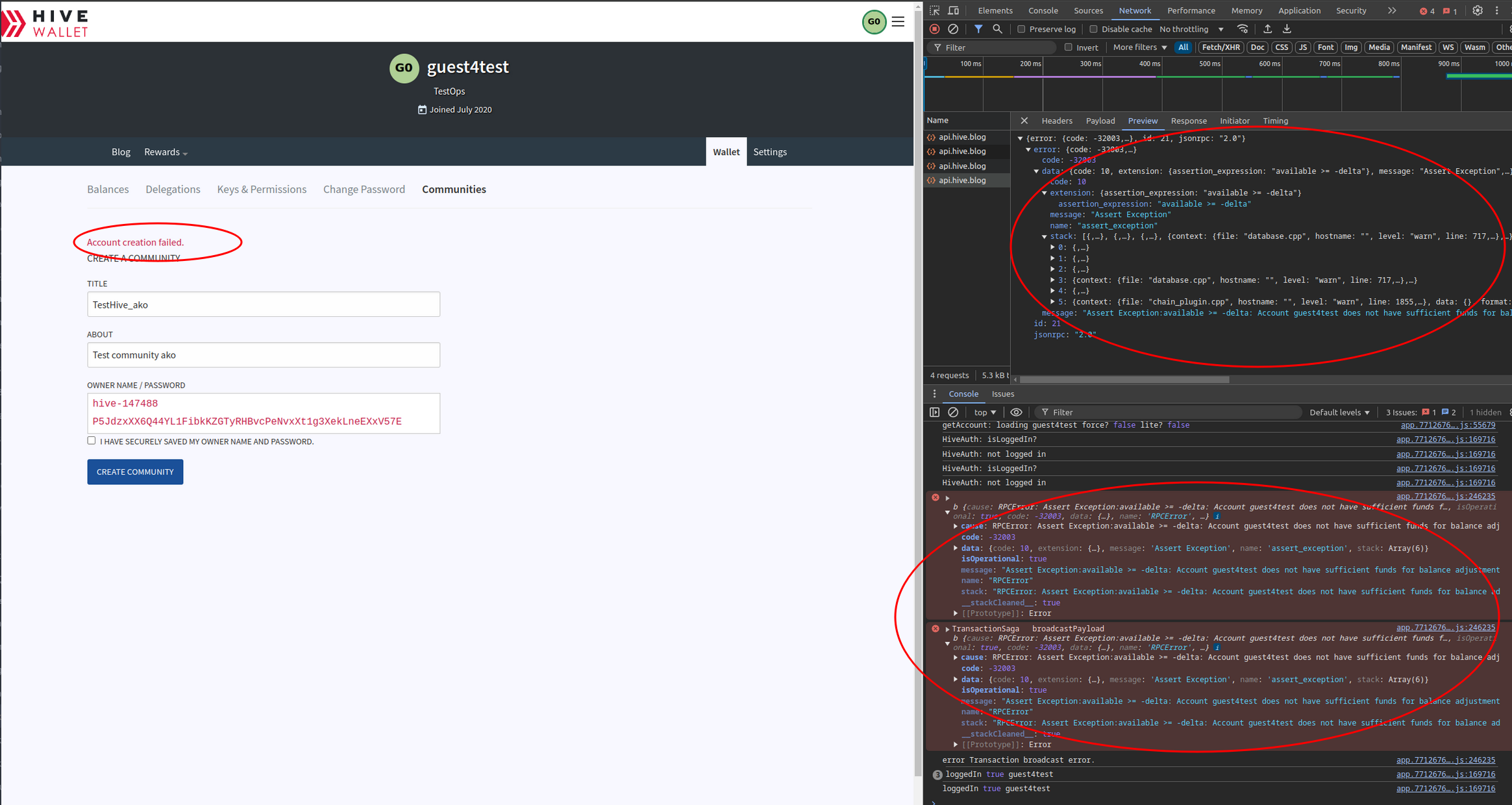 Wallet create community does not work well