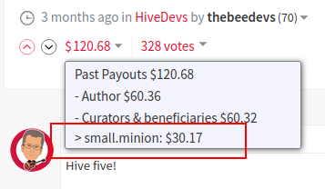 /hive-139531/@thebeedevs/hive-is-five Check the conditions for displaying beneficiaries in the Condenser code. See Condenser: Compare with Denser: