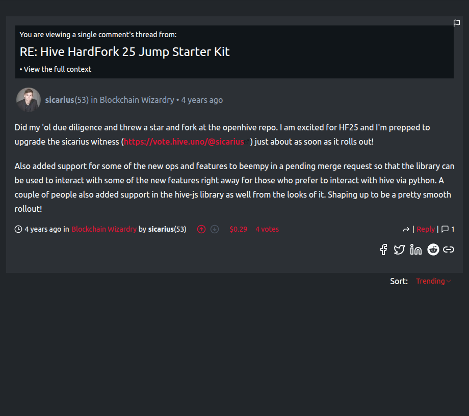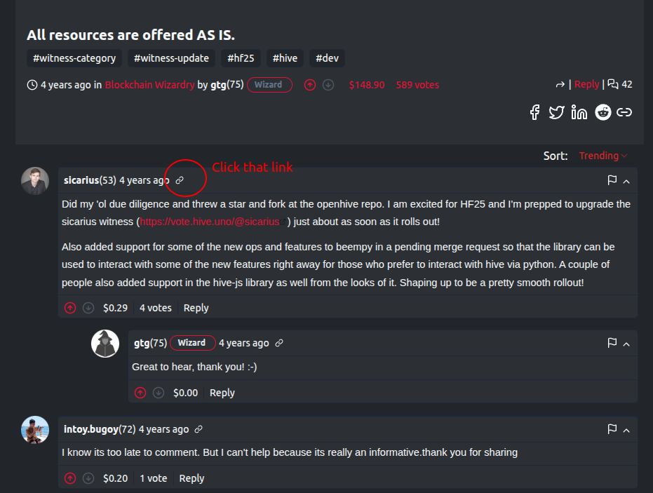 For instance: move to the post /hive-160391/@gtg/hive-hardfork-25-jump-starter-kitClick selected link. User was moved to the comment view page without nested comments: Expected comment view page should display as in below image:
